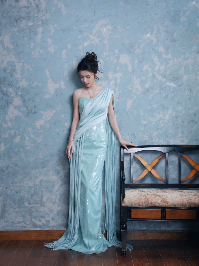 李云霄微博之夜,一身Tiffany蓝流苏裙,怎么这么仙🧚🏻♀️李云霄李云霄微