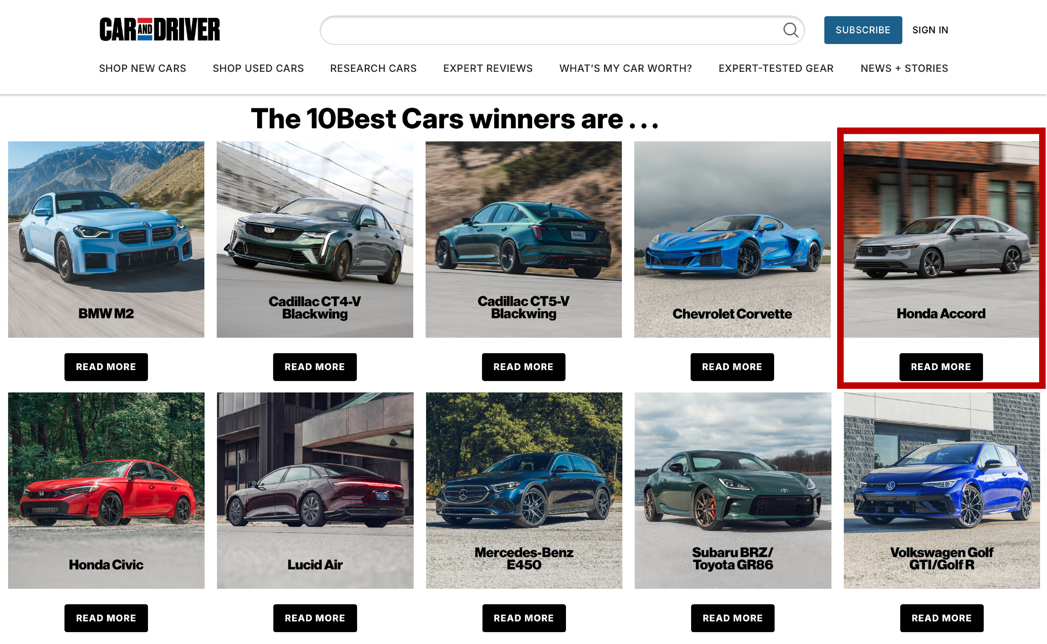 简单说下这个奖:《Car and Driver》的10Best是全球公认的老牌权威榜单,测试严、标准高,能连续几十年被它认可,本身就是实力的证明。50年拿了40次奖,什么概念?相当于雅阁诞生以来,八成的年份都没缺席过这份榜单。