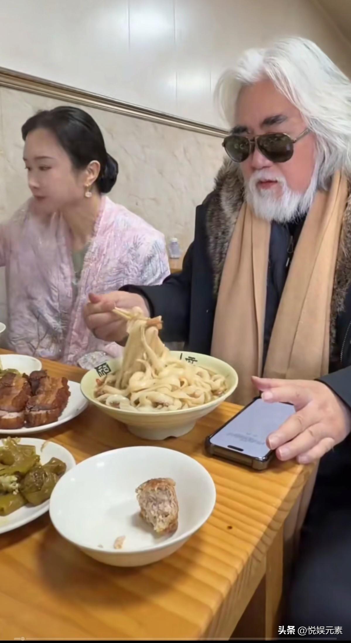 张纪中老师身体蛮好的, 都七八十岁的人了, 还能吃那么一大碗面, 而且红光满面,坐着那么板正笔直, 妻子杜星霖有福了。