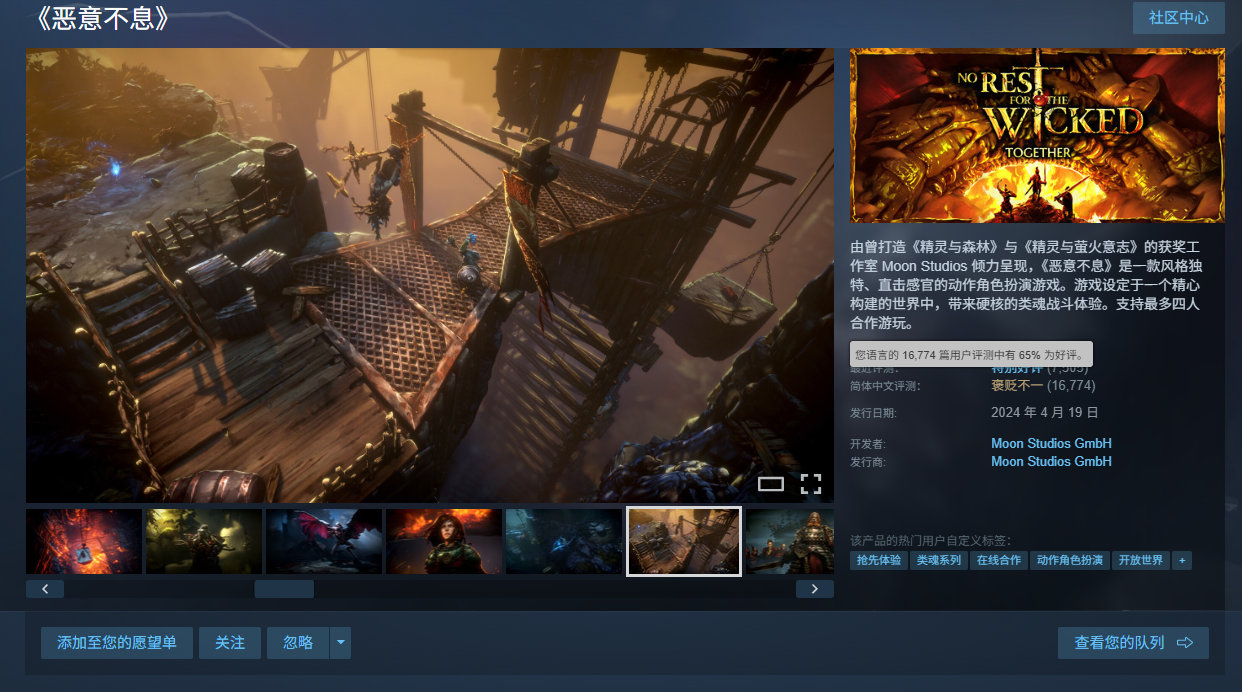 动作RPG《恶意不息》销量已突破150万份。本作由《奥日》系列开发商Moon Studios打造,目前在Steam上享新史低优惠,折后83.4元(原价139元),2月6日凌晨2点截止,支持中文,国区好评率为65%,收录超16000篇玩家评测。