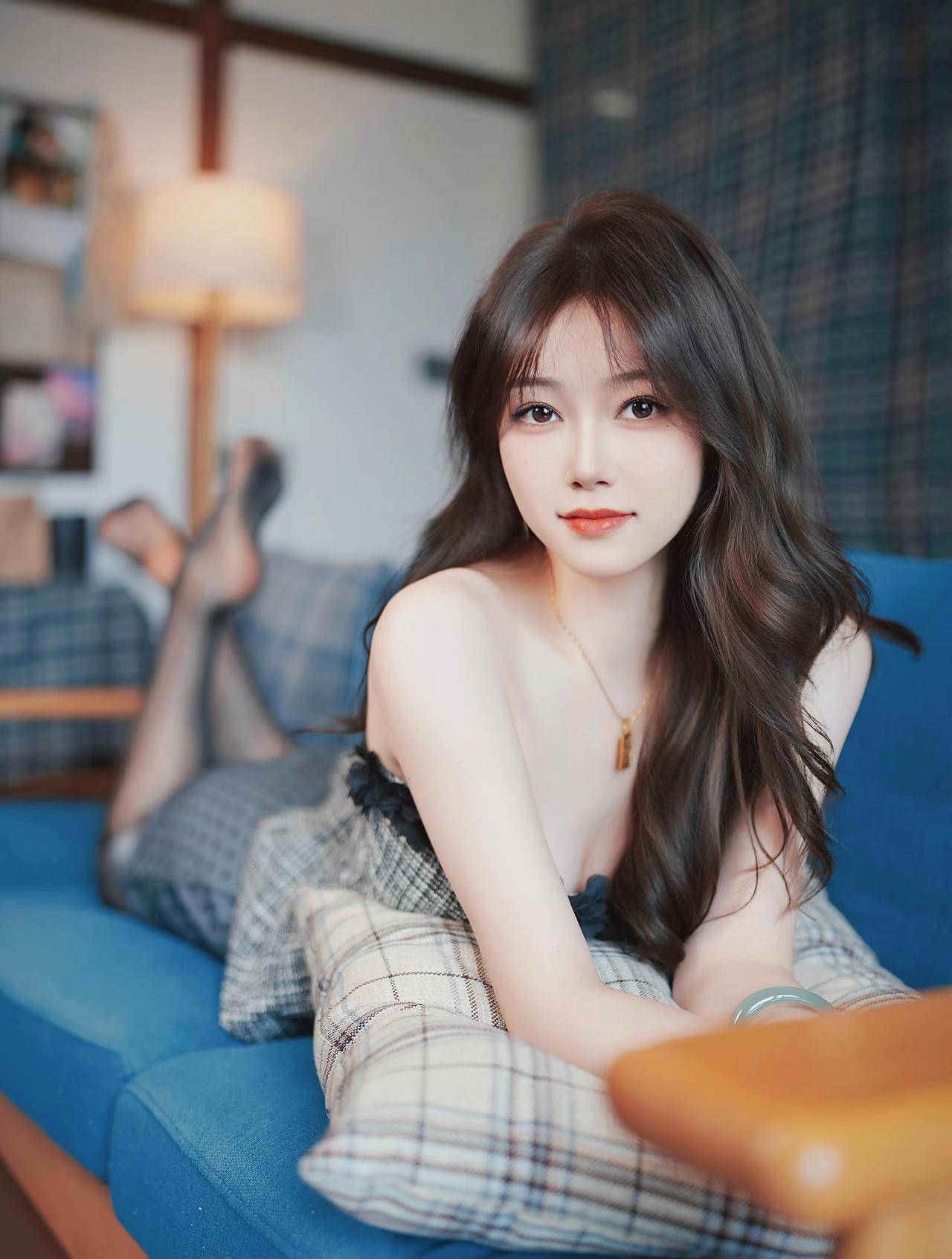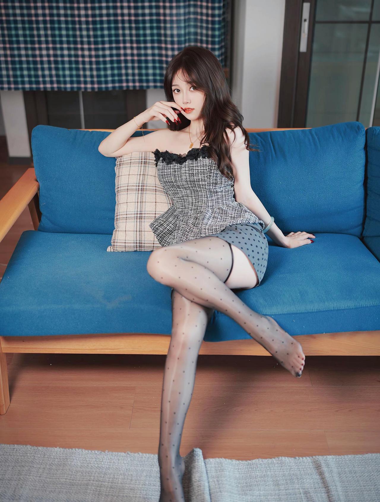 《晴窗懒意》 蓝榻晴光半日闲,香凝罗袜点轻斑。 朱唇微漾春心暖,懒倚芳丛意自安。