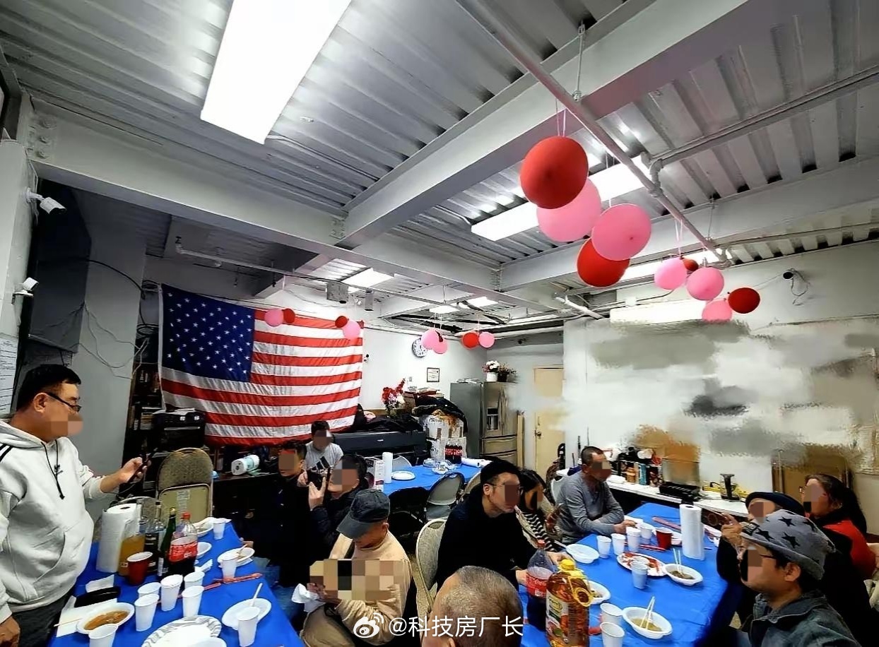 网传的美国润人年度聚餐照片,在地下室吃盒饭,卫生纸当餐巾…