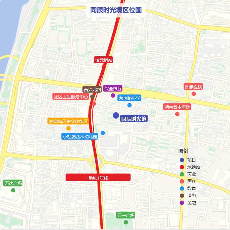 交通上,项目距地铁1号线培元桥站仅约327米,步行5分钟即达。3站直达五一广场,轻松换乘全城。自驾出行也极为便捷,紧邻营盘路、黄兴北路两大主干道,快速接入二环、湘江中路,无论是去火车南站还是黄花机场,都一路畅达。