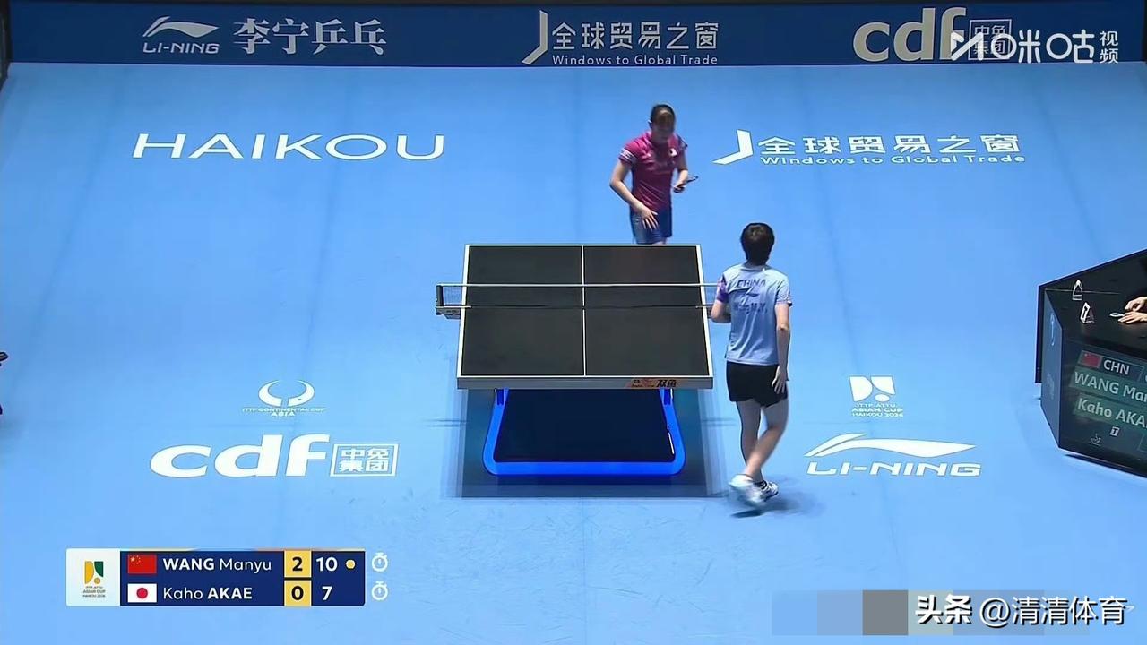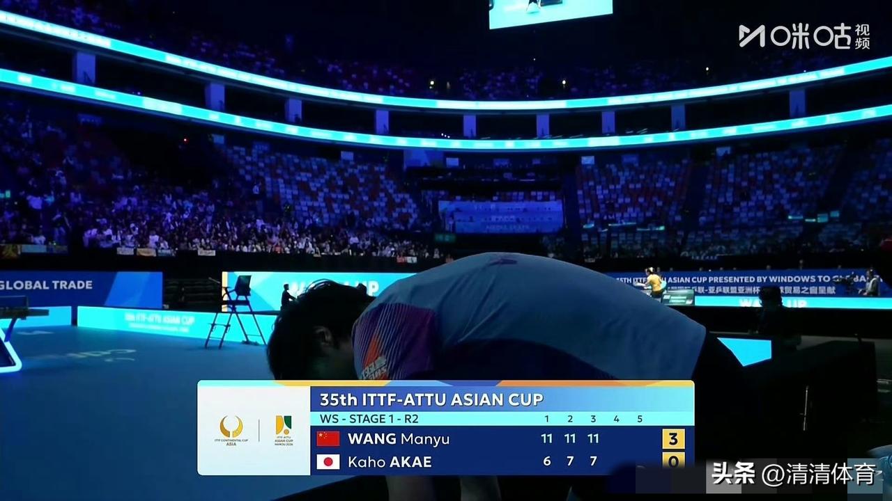 2026海口亚洲杯女单小组赛第2组,王曼昱3-0横扫赤江夏星,三局比分11-6、11-7、11-7,强势拿下两连胜! 全场节奏完全被曼昱掌控,反手压制、正手衔接滴水不漏,对手拼尽全力也打不穿这堵“墙”。第三场小组赛,王曼昱将对阵卡塔尔选手艾娅,继续冲击小组头名,稳稳晋级!
