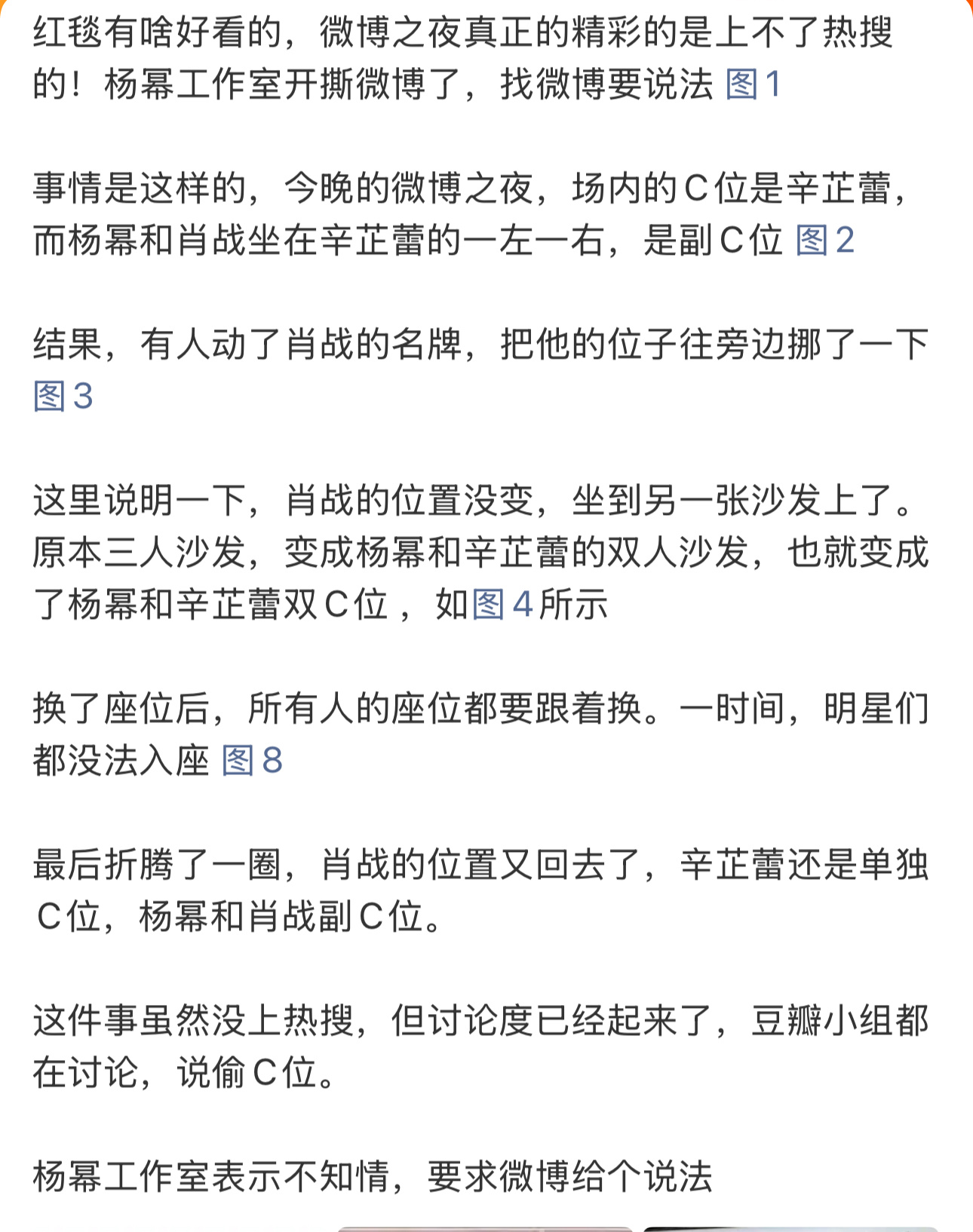 原来,微博之夜最大的看点是各家明星的座位上微博之夜内场