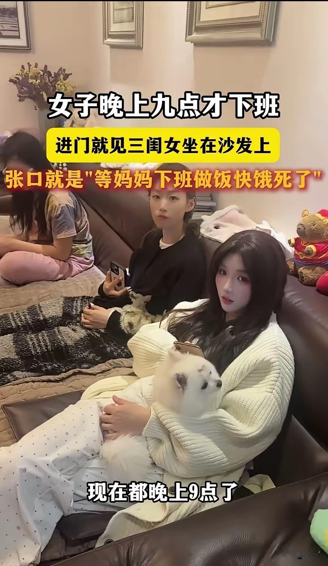 这家三个姑娘出名了,她的妈妈9点下班,一开门直接愣在原地,三个姑娘,一人一个手机! 整齐的坐在沙发上,一动不动,每个人不停的刷着手机,还我吃着小零食,张口就是,等妈妈下班做饭都快饿死了! 这就是宠溺女儿的结果,直接让这么大的三个女孩变成了巨婴,不会做饭,不会做家务,所有的事情都要妈妈来做! 这三个人不但不羞耻,反而觉得这是荣耀,毕竟只负责貌美如花就可以了,以后嫁个勤快的中国男人! 10指不沾阳春水,天天坐等饭菜就可以了,除了能够生娃,啥也不会,这就是当代部分女性的真实写照! 都说妇女能顶半边天,这三个闺女可好了,连1/4天都顶不了,可能平时就是这个妈妈惯的了,结果需要自己来填坑! 不知道将来便宜了谁家大孙子,能娶上这貌美如花的媳妇儿,可算是18辈儿祖宗心灵了! 这娶回家可得供着,不然晚回家一个小时就要饿死了,这样的社会女巨婴真的太可怕了,谁娶谁知道? 社会巨婴 巨婴 三个闺女也挺好 三姑娘合影 妯娌三个美女