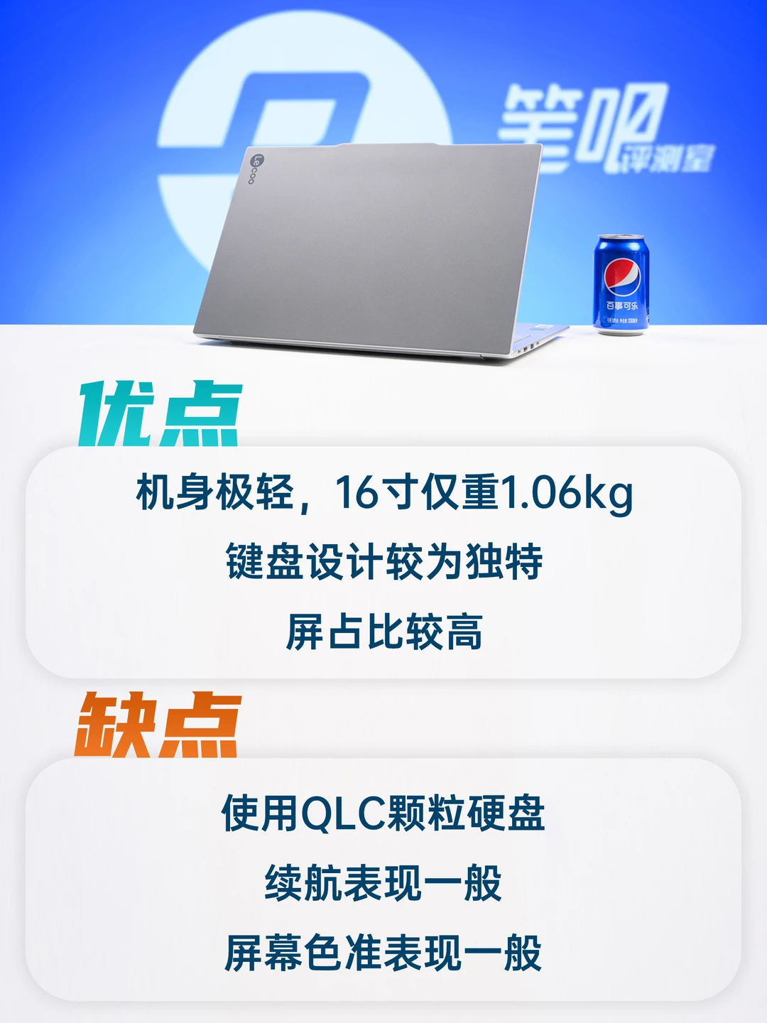 ✅机身极轻,16寸仅重1.06kg