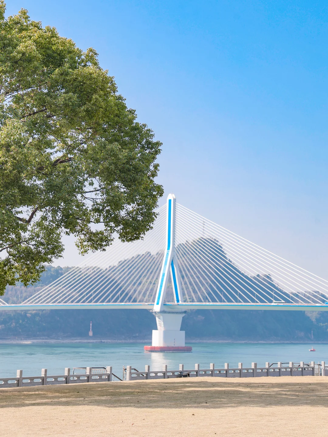 宜昌标志性的红桥,横跨长江超出片!傍晚去超舒服,夕阳映着桥身和江水,晚风一吹太治愈了.