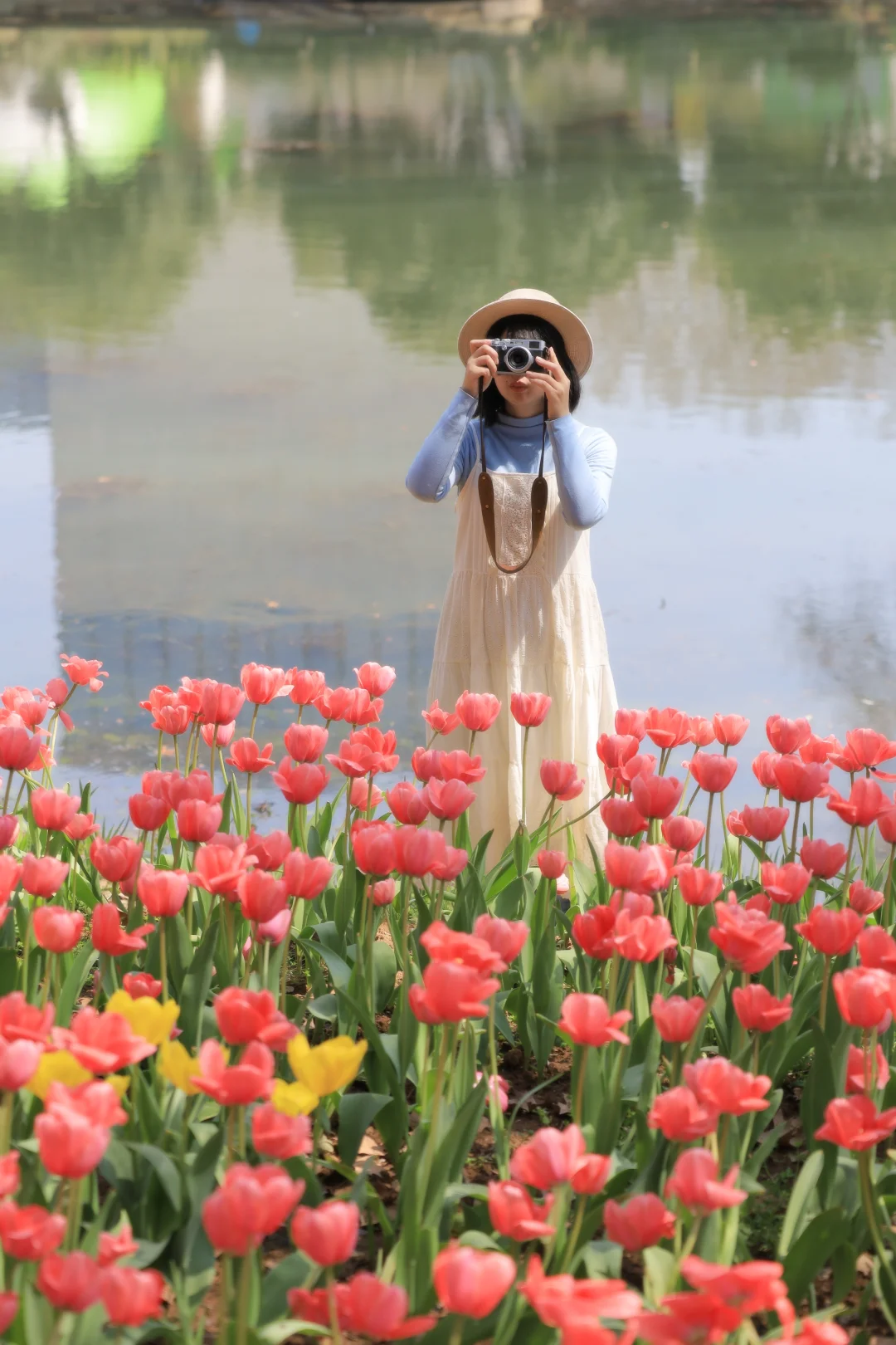 0元郁金香🌷天花板,开在湖边的大片郁金香太浪漫,适合拍人像