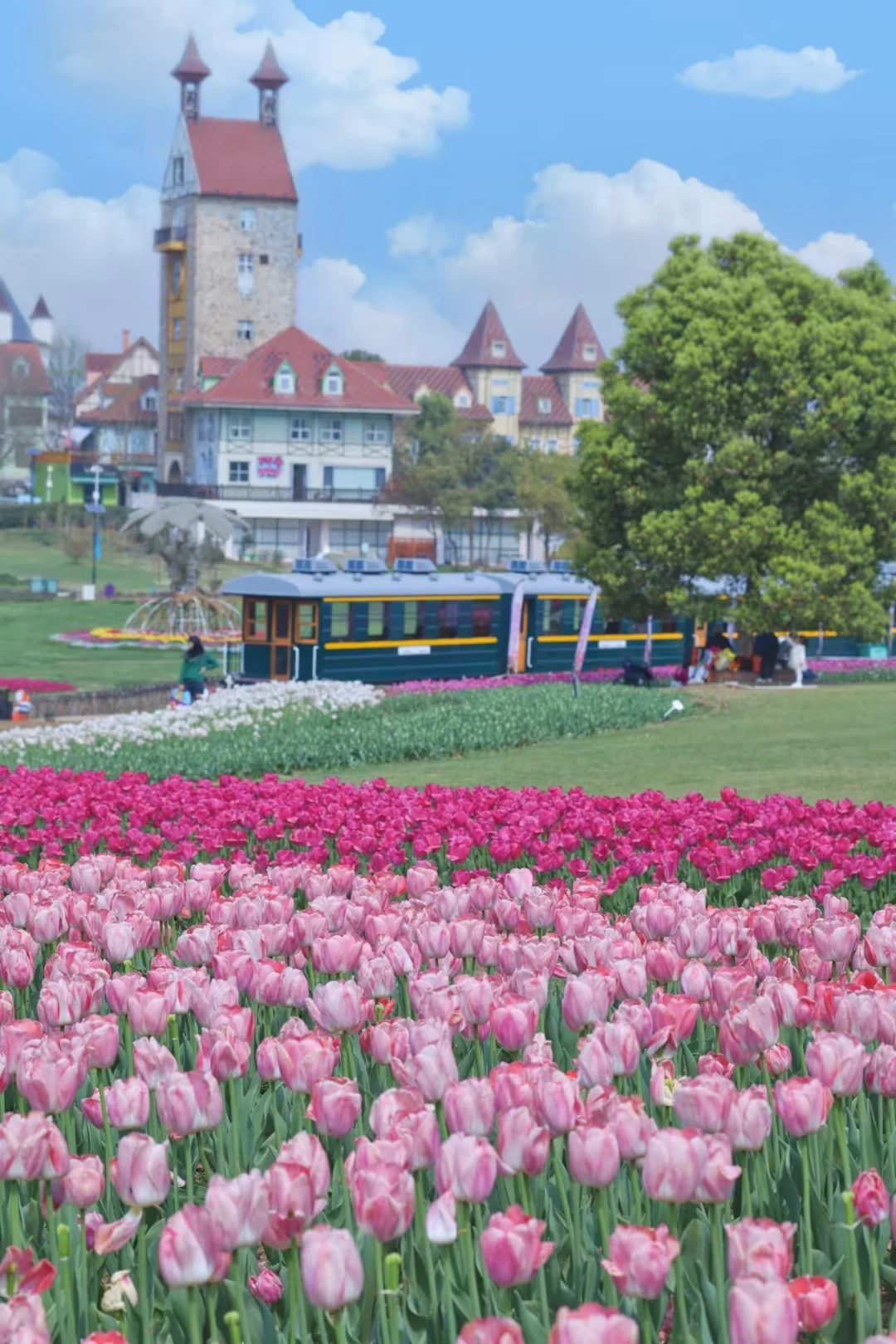 开往春天的小火车和大片郁金香🌷仿佛闯入宫崎骏漫画