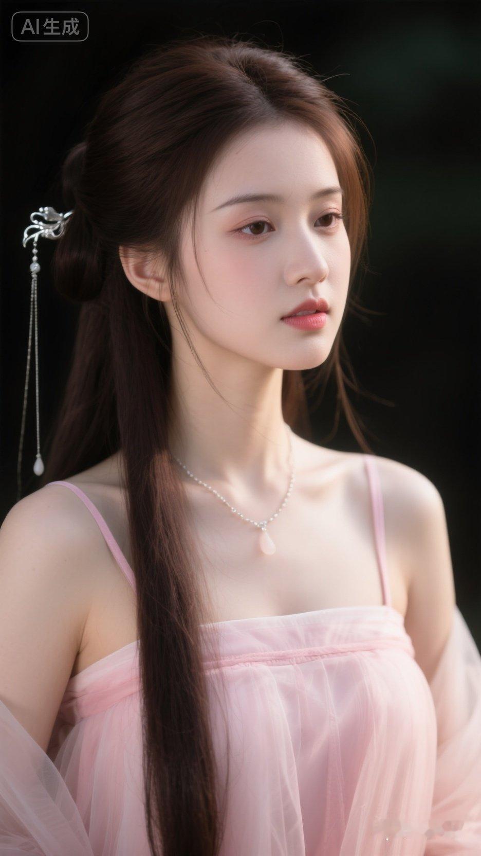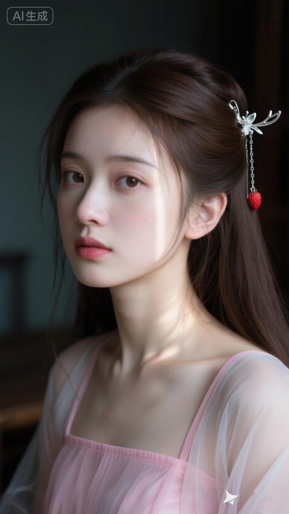 梦幻少女风,粉色薄纱裙,甜美草莓耳饰,温柔氛围照。