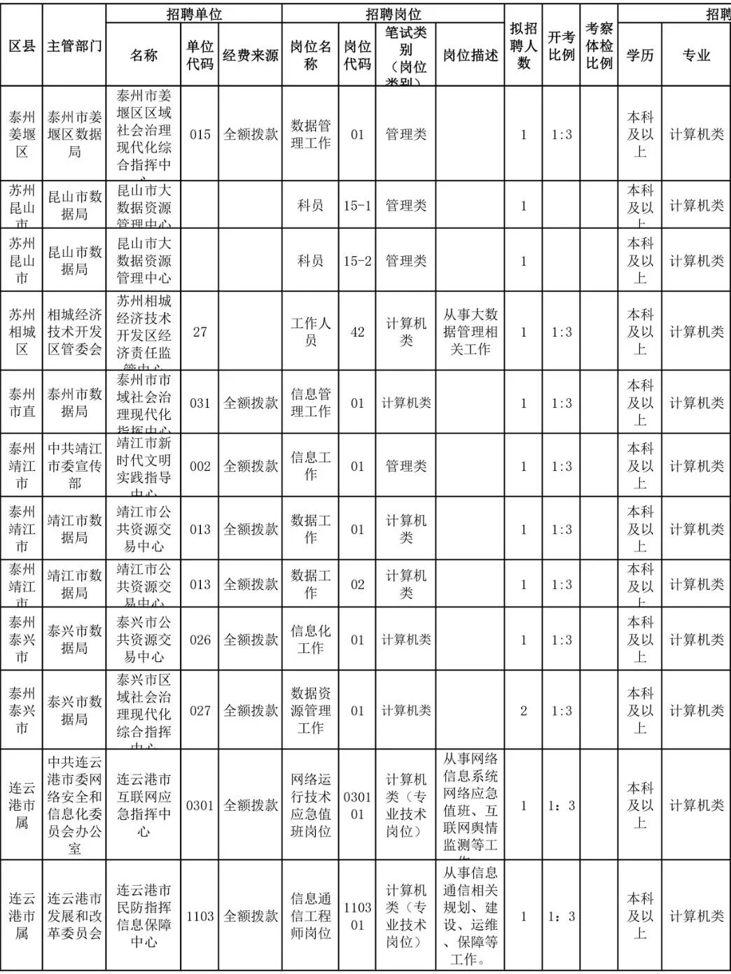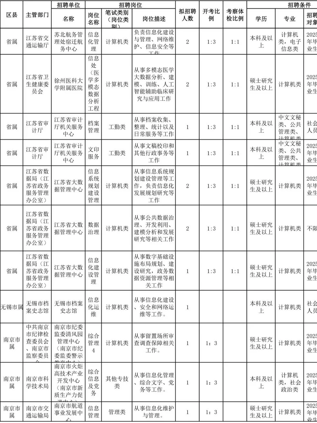 [打卡R]国省考已过,错过这两次机会不要慌,还有江苏事业单位,计算机类岗位真的很多!难度比考公低很多,想考江苏体制内的同学,可以准备起来了! [打卡R]给大家整理了历年江苏事业单位的岗位表,这是选岗非常重要的参考,准备参加事业单位统考的同学可以参考选岗 [打卡R]计算机类事业编,各地市均有大量岗位,技能岗管理岗均有,涉及系统运维、软件开发、数据分析等多方向
