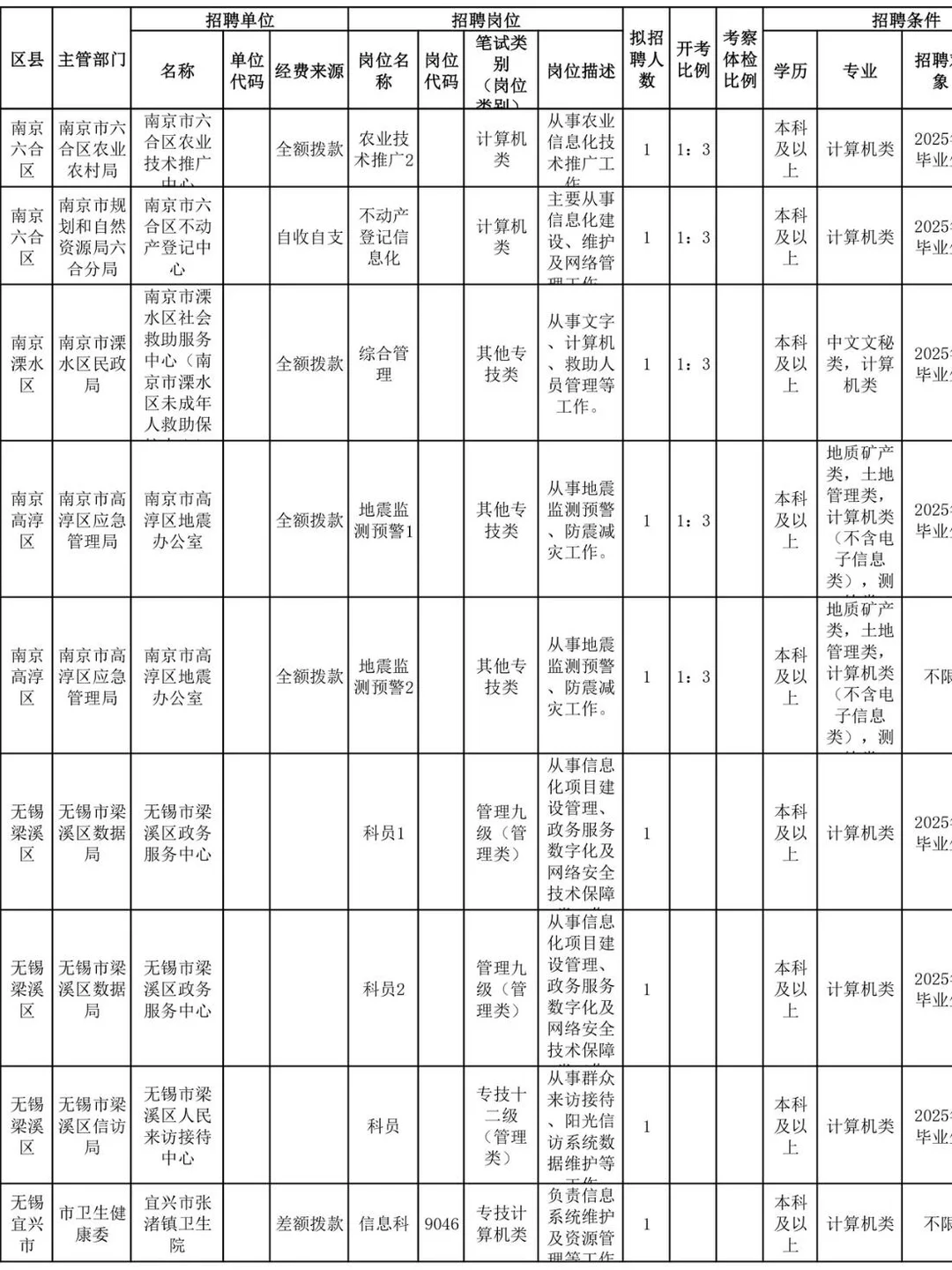 江苏事业单位—计算机类岗位