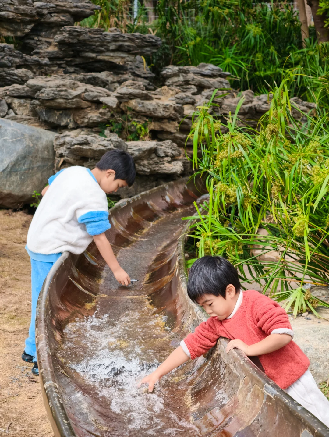 💦 嬉水长廊:公园里有一条长长的浅水道,水质清澈,小孩子可以玩水、放船
