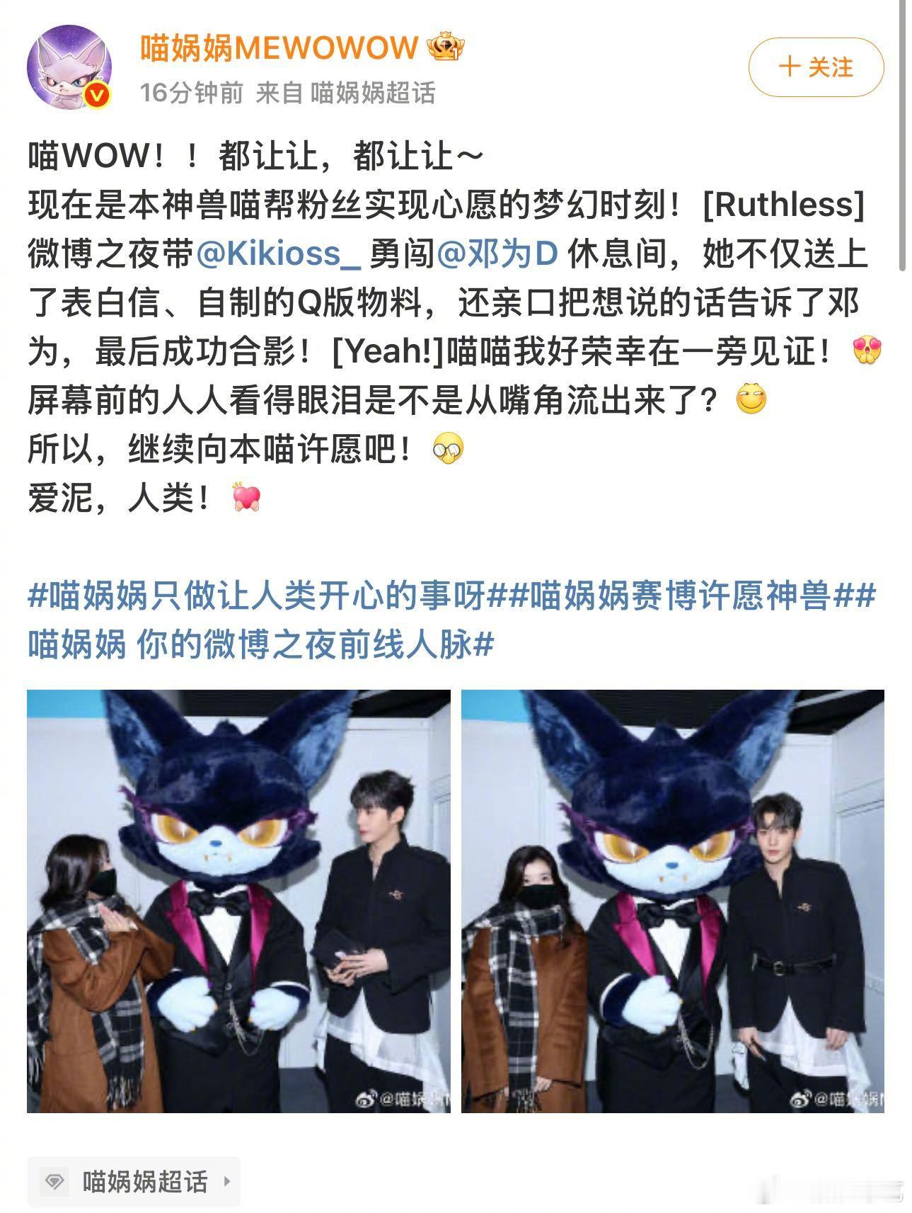 喵娲娲帮粉丝追星邓为 当表白信递到手里的那一刻,弹幕已经开始集体破防了。牵线成功,与 的合影正式诞生,原来幸福真的会溢出屏幕!