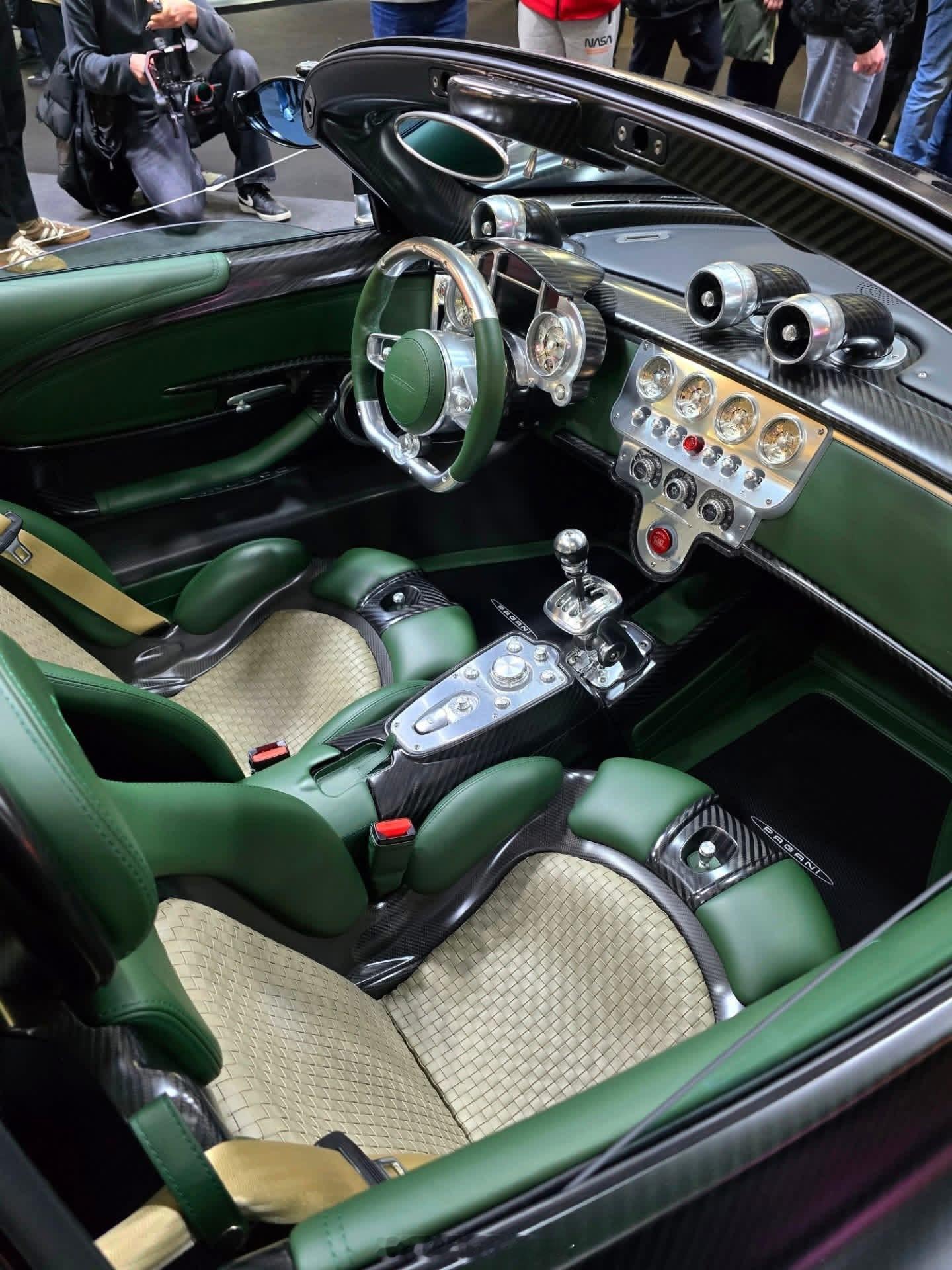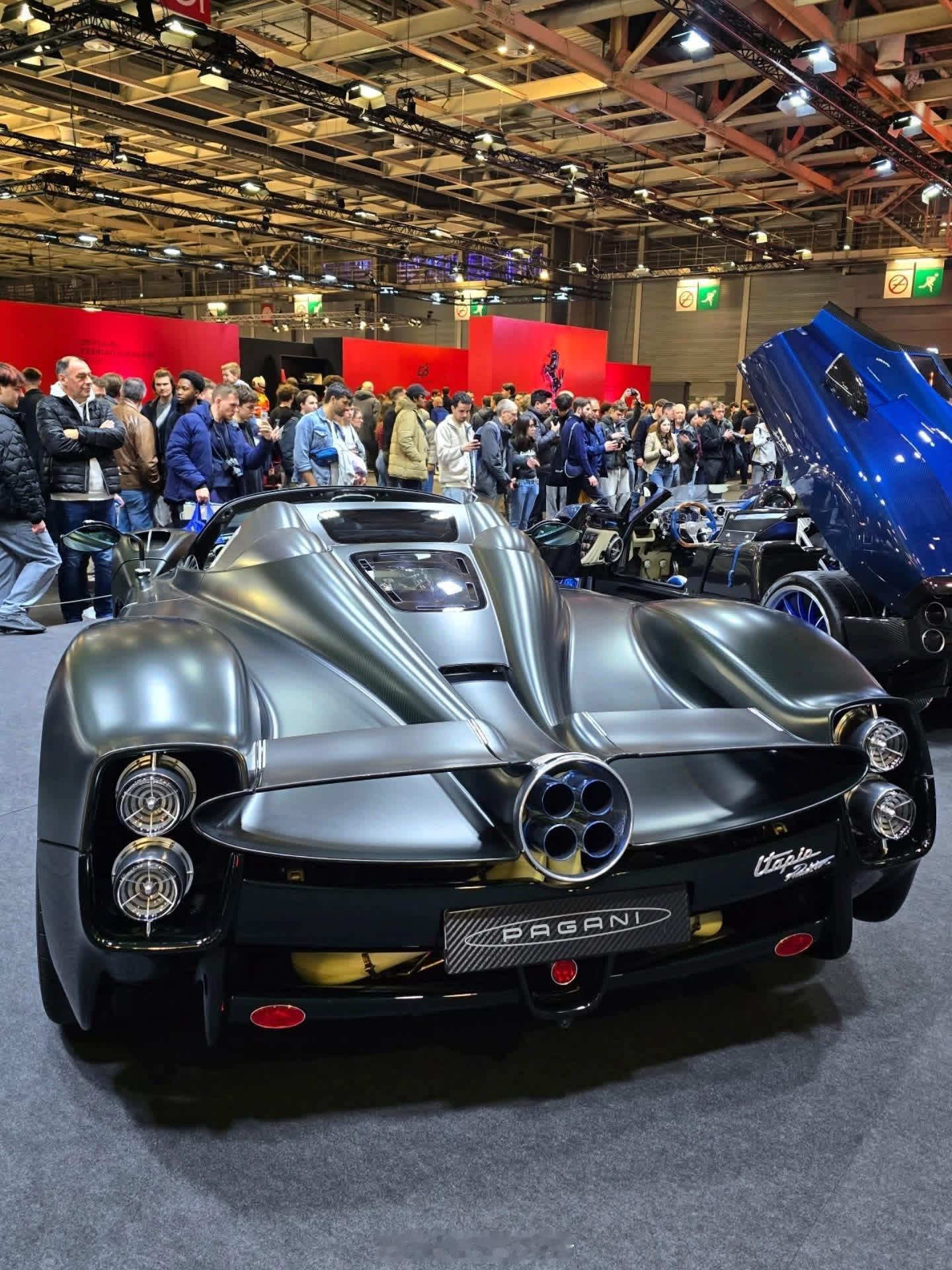 法国🇫🇷巴黎旧能源老旧淘汰车展帕加尼乌托邦敞篷版通体暗绿色碳纤维手工编织小牛皮座椅