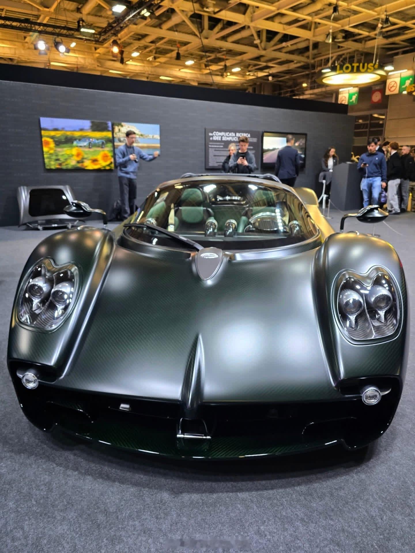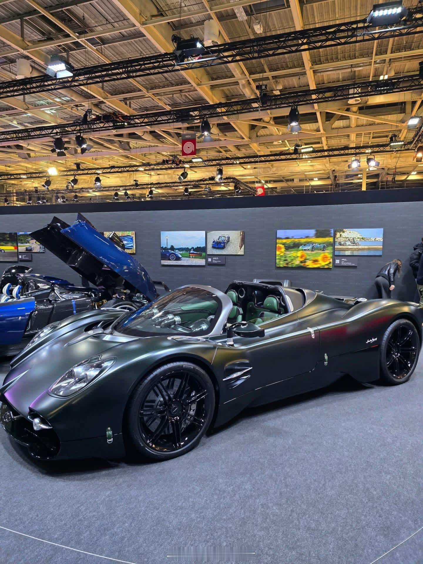 法国🇫🇷巴黎旧能源老旧淘汰车展帕加尼乌托邦敞篷版通体暗绿色碳纤维手工编织小牛