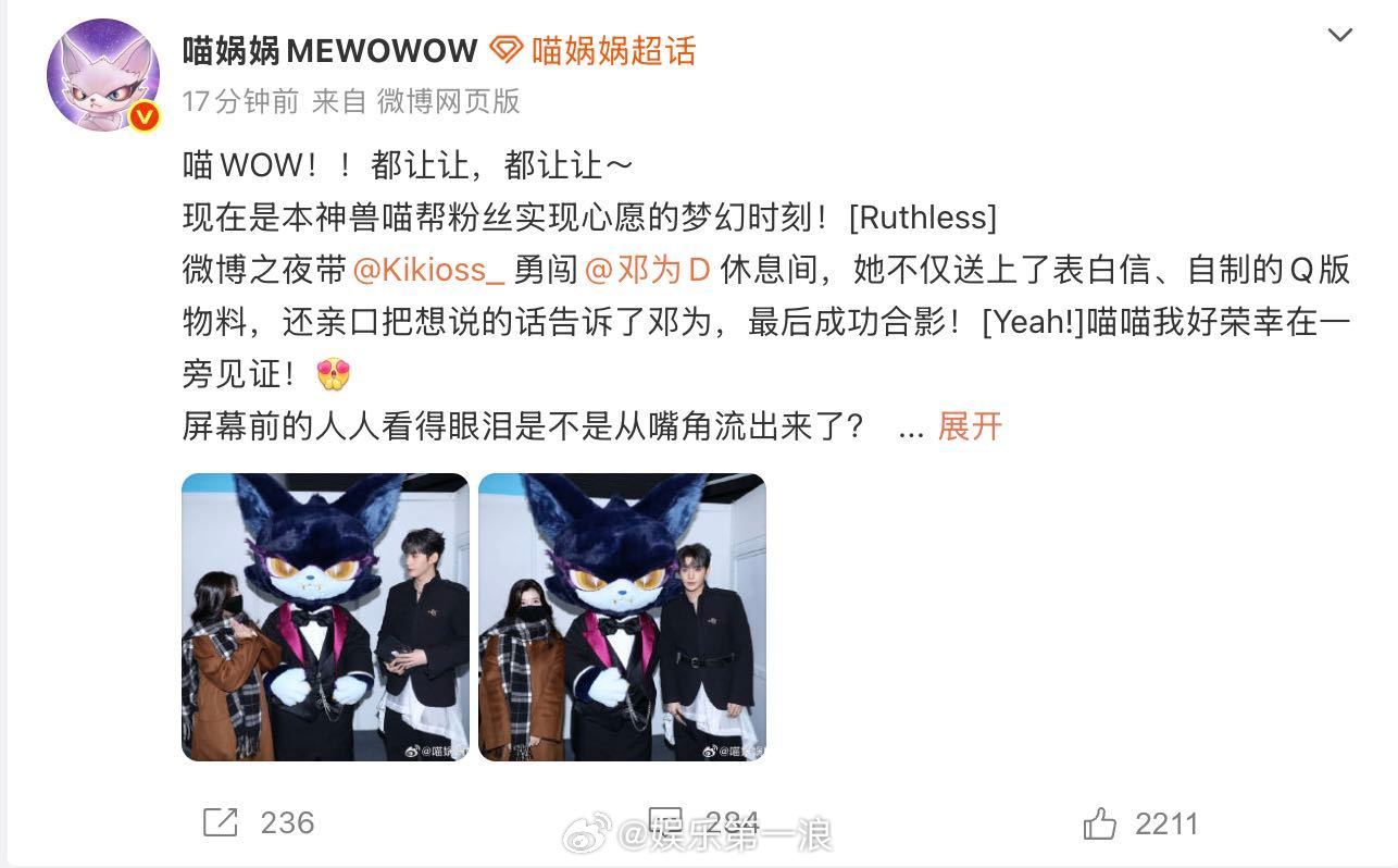 喵娲娲帮粉丝追星邓为 全网羡慕的追星时刻来了!在的见证下,粉丝不仅和邓为成功合影