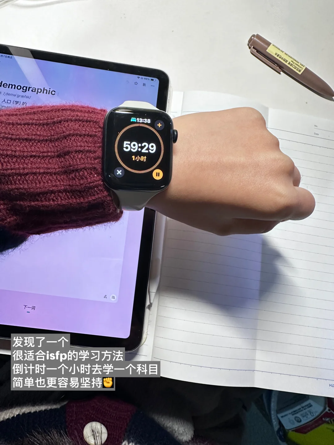 最近,找到了一个很适合我们isfp学习的方法,学一个小时的xxx,尽量把定的目标简单化,才更有可能坚持下去!于是,逮着起初一丝丝想要学习的念头,坚持了一周。当闹钟最后想起来的时候,成就感立马拉满,内耗也会减少。