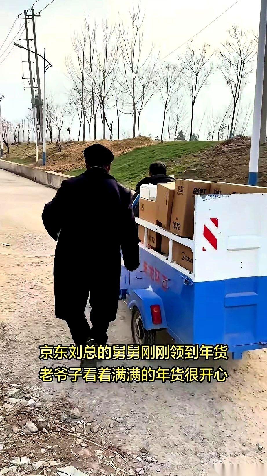 江苏宿迁,刘强东老家发年货,队伍排得老长。 但有个老头最特别。 别人都往前挤,伸长了脖子,就他,两手往后一背,不远不近地跟在发东西的卡车屁股后面。那表情,不像领东西的,倒像视察的。 旁边人悄悄指点:“瞧,那是强东他舅。” 这一说,他那背着手的姿态,就全看懂了。他不是来领东西的,他是来替外甥“站台”的。大卡车上的米和油,就像是他自家外甥打下的江山,他得亲眼看着,乡亲们一个个都领到,领得高兴。 队伍一点点往前挪,轮到他了。他这才慢悠悠走上去,发货的小伙子把一份年货递到他手里。他接过来,掂了掂,跟前后左右任何一个人手里的,一模一样,不多一钱,不少一两。 他没直接走,拎着东西在人群里转了一圈,碰见熟人就点点头,那意思是:看见没,我外甥办的事,敞亮。 有人说,这都是场面上的,私下里外甥给舅舅的,能跟这点米油一样吗? 可场面上能做到一碗水端平,让所有人都看着,这就是最大的体面。有一种本事,叫“我跟你领一样的”,但所有人都清楚,这恰恰是最大的不一样。