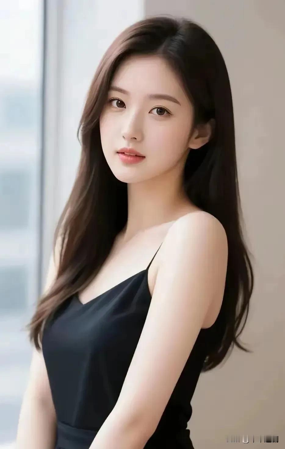 午后的光漫过窗沿,落在她柔软的发梢。一袭黑裙衬得肌肤胜雪,眼神里藏着几分清冷,又