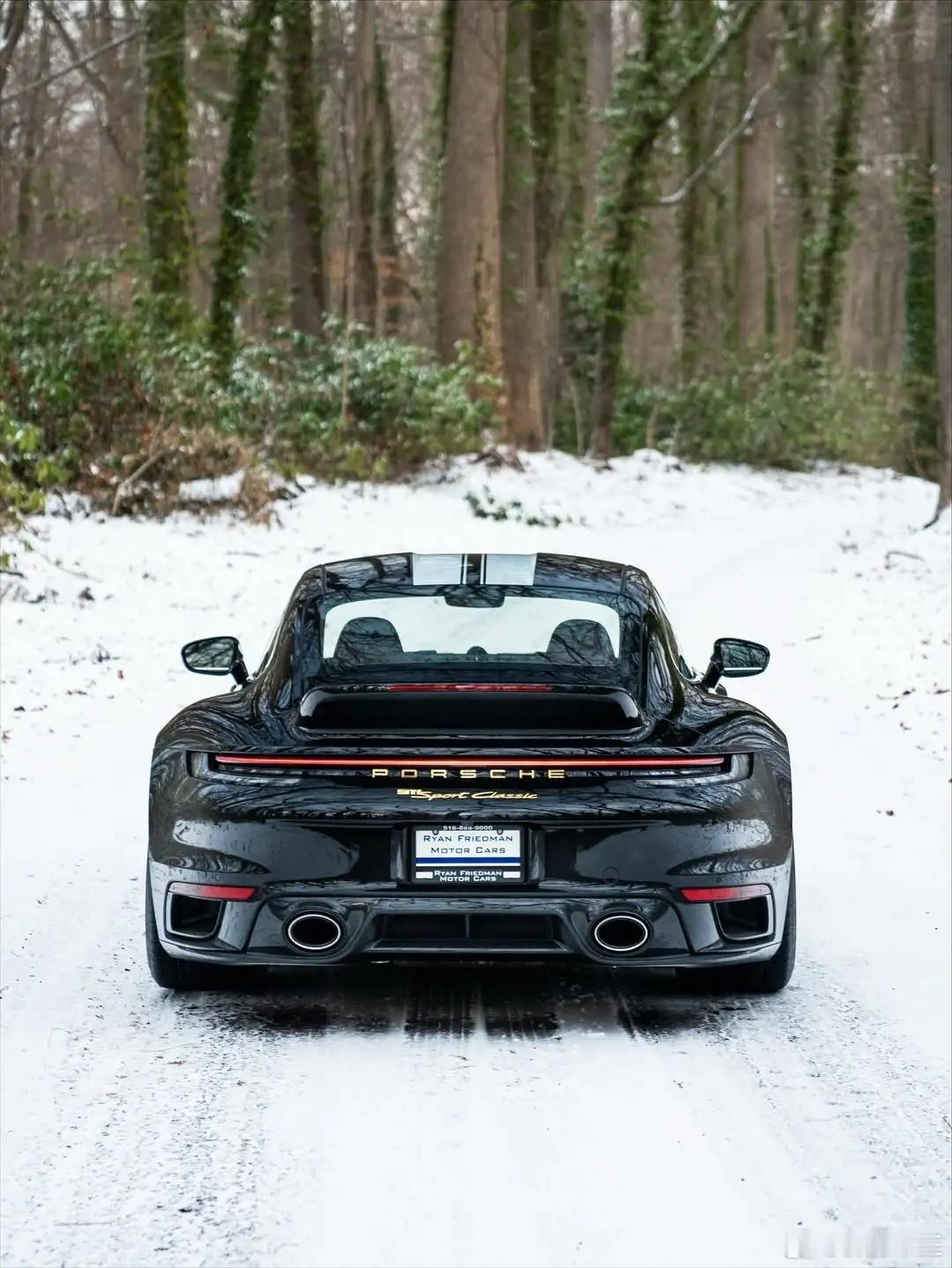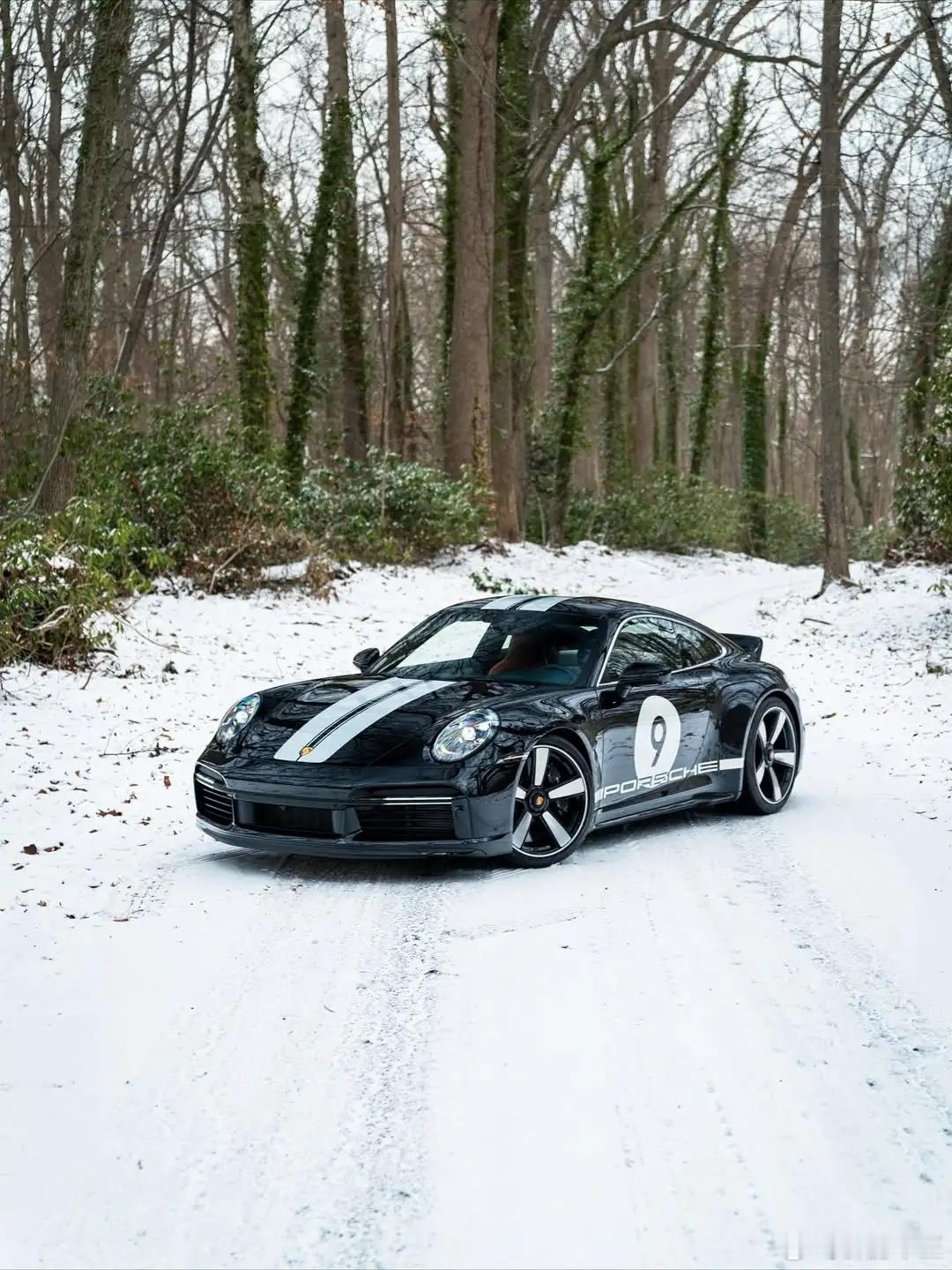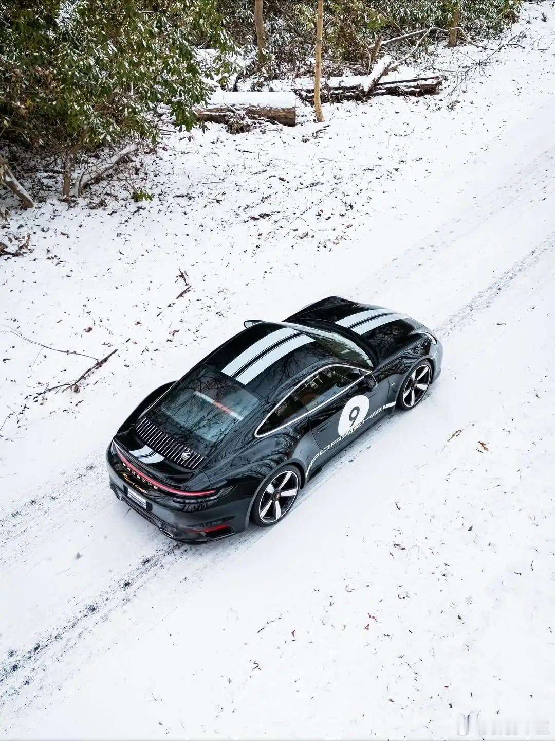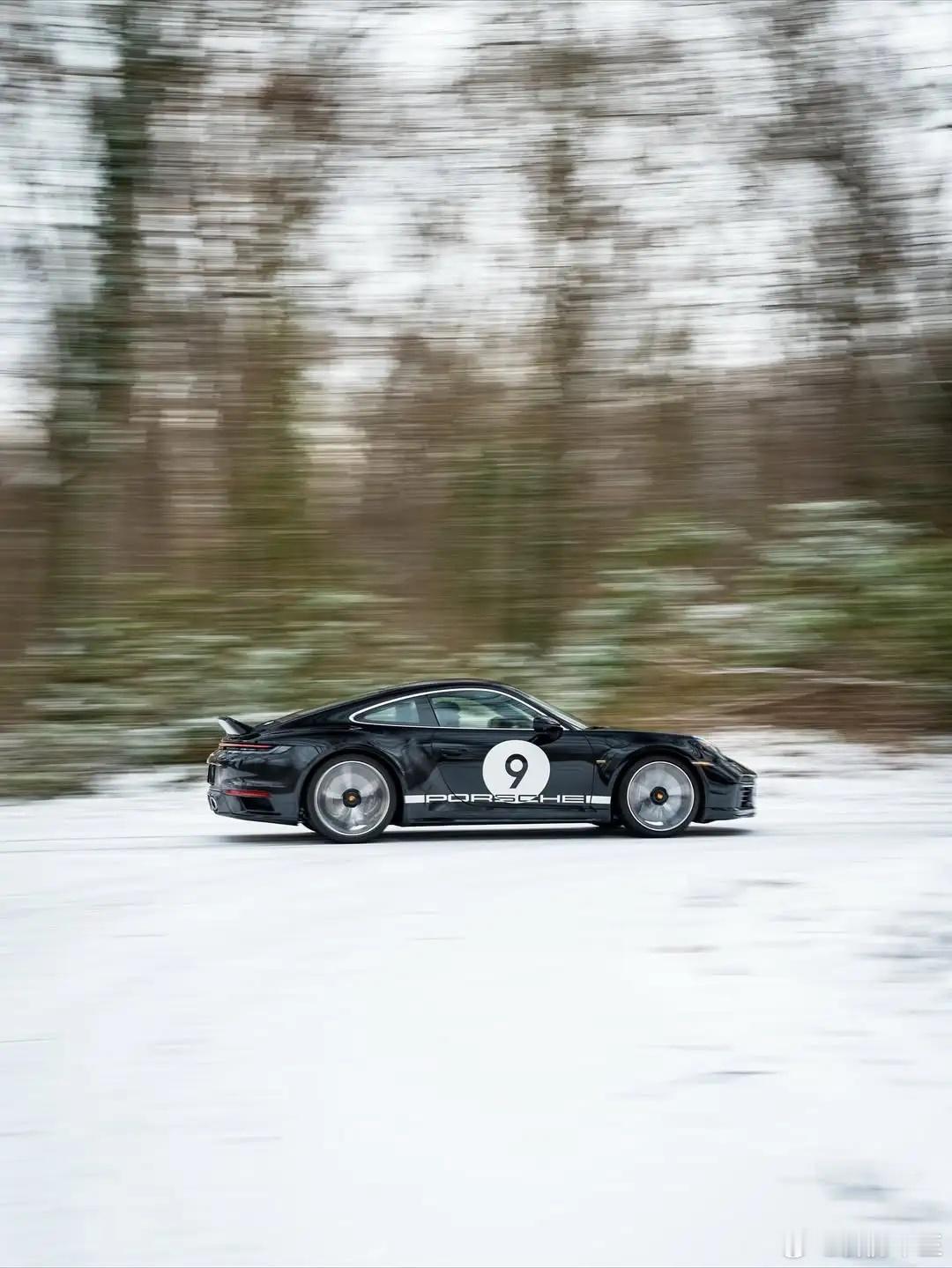 风雪与经典曲线共舞。911 Sport Classic 在纯白画卷上,画出暖意的