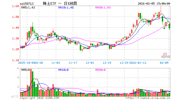 2月5日,稀土ETF(159713)跌4.07%,成交额9619.20万元。当日份额增加2100.00万份,最新份额为7.97亿份,近20个交易日份额减少700.00万份。最新资产净值计算值为11.07亿元。