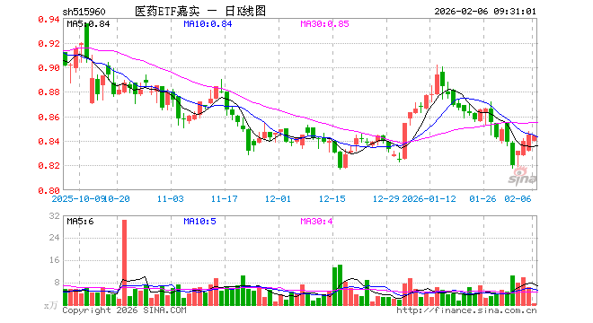 2月6日,医药ETF嘉实(515960)开盘跌0.59%,报0.840元。医药ETF嘉实(515960)重仓股方面,药明康德开盘跌0.75%,恒瑞医药跌0.72%,迈瑞医疗跌0.11%,爱尔眼科跌4.43%,云南白药涨1.52%,新和成跌0.79%,华东医药跌0.03%,复星医药涨0.30%,百济神州跌0.58%,康龙化成跌0.69%。