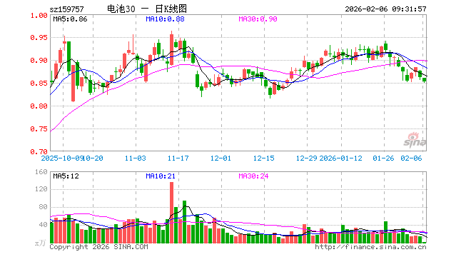 2月6日,电池ETF景顺(159757)开盘跌0.23%,报0.860元。电池ETF景顺(159757)重仓股方面,比亚迪开盘跌0.80%,宁德时代跌1.00%,三花智控跌1.46%,华友钴业跌3.31%,亿纬锂能跌0.99%,赣锋锂业跌3.04%,天赐材料跌1.22%,先导智能跌1.45%,国轩高科跌2.05%,厦门钨业跌2.21%。