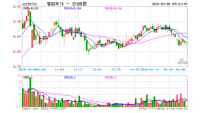 2月6日,智能车ETF泰康(159720)开盘跌0.84%,报0.823元。智能车ETF泰康(159720)重仓股方面,宁德时代开盘跌1.00%,比亚迪跌0.80%,立讯精密跌0.64%,三花智控跌1.46%,汇川技术跌0.93%,赛力斯跌0.51%,豪威集团跌0.88%,亿纬锂能跌0.99%,拓普集团跌0.63%,华友钴业跌3.31%。