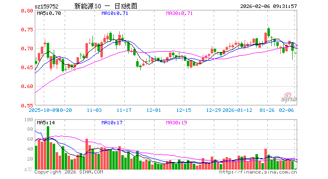 2月6日,新能源ETF申万菱信(159752)开盘跌0.58%,报0.688元。新能源ETF申万菱信(159752)重仓股方面,宁德时代开盘跌1.00%,阳光电源跌1.37%,亿纬锂能跌0.99%,中国核电跌0.12%,天赐材料跌1.22%,三峡能源跌0.24%,先导智能跌1.45%,金风科技跌0.24%,格林美跌1.77%,国轩高科跌2.05%。