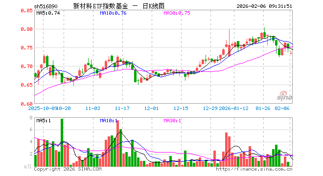 新材料ETF指数基金(516890)业绩比较基准为中证新材料主题指数收益率,管理人为平安基金管理有限公司,基金经理为刘洁倩、马浩然,成立(2021-07-09)以来回报为-25.46%,近一个月回报为2.22%。