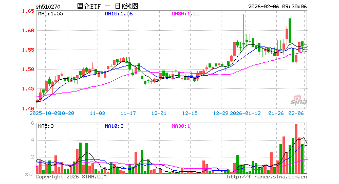国企ETF(510270)业绩比较基准为上证国有企业100指数,管理人为中银基金管理有限公司,基金经理为赵建忠、李念,成立(2011-06-16)以来回报为81.95%,近一个月回报为1.43%。