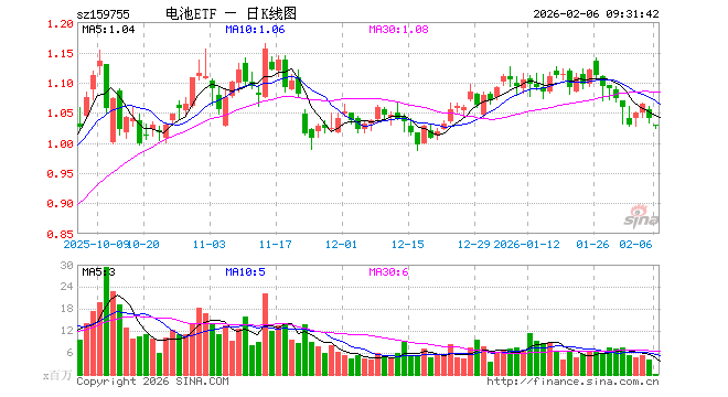 电池ETF(159755)业绩比较基准为国证新能源车电池指数收益率,管理人为广发基金管理有限公司,基金经理为罗国庆,成立(2021-06-15)以来回报为4.12%,近一个月回报为-4.58%。