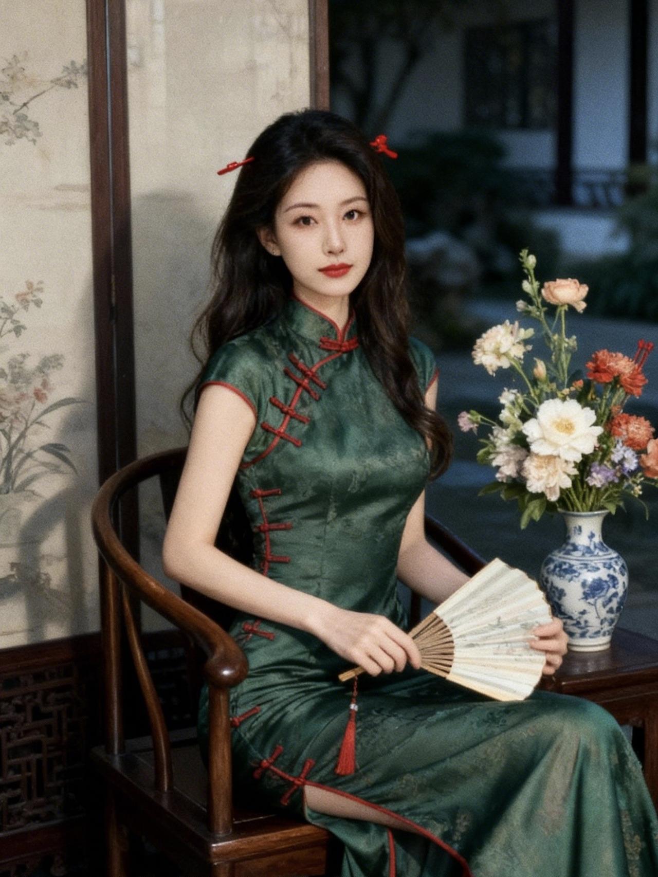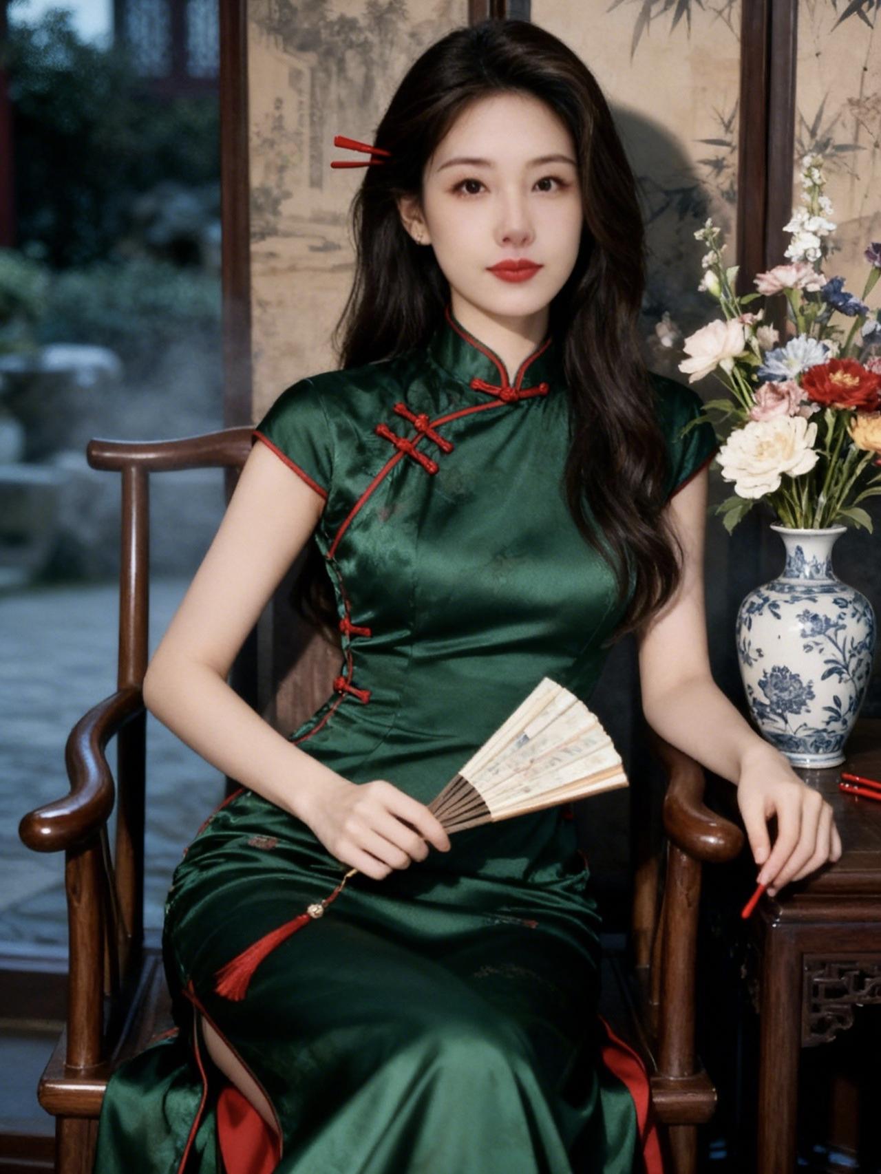 《穿旗袍的人,藏着旧时光》 盘扣扣紧半阙民国风 立领托着檐角的月 丝绸滑过青石板 一步,碾碎一声蝉鸣 她走过雕花窗棂 影子落在旧画报上 与留声机的尾音缠绕 缎面褶皱里 卧着未说尽的家常 与褪色的海棠 针脚密织着流年 每一道滚边 都缝住巷口的斜阳 她不疾不徐 把喧嚣隔在襟外 只携一袖温婉 在时光褶皱里 轻轻安放 旗袍是时光的信笺 墨痕淡了,风骨未凉 穿旗袍的人 把岁月穿成诗行 一转身 旧时光便从裙裾间 缓缓流淌 旗袍巷景照 旗袍图 国风老旗袍 气质盘扣 盘扣 文艺盘扣 国风盘扣