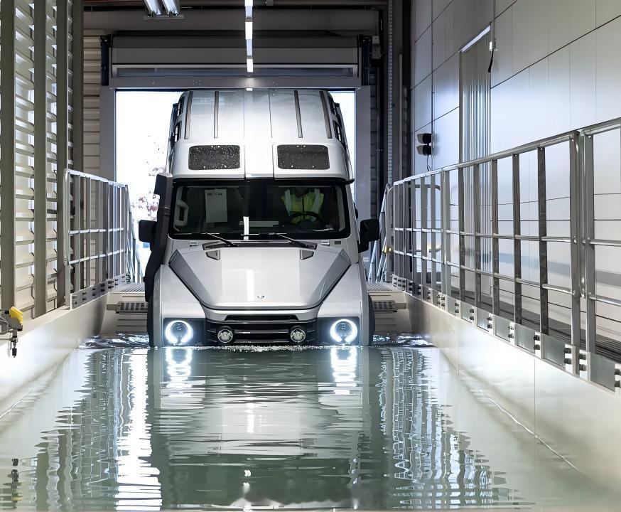 为确保掷弹兵的出厂品质,在法国汉巴赫厂区内。特别设立了全面而专业的测试区域,其中包括一条极限越野测试车道和一个涉水测试区,后者用于定期测试英力士掷弹兵高达800毫米的可涉水深度,以此符合最严苛的硬派越野车标准。