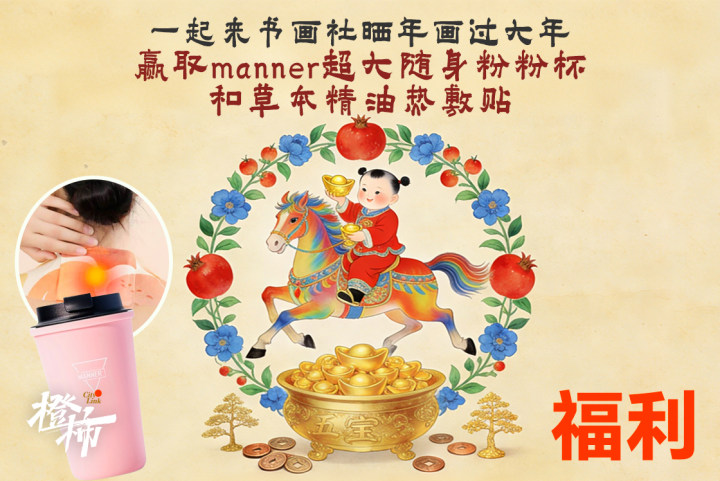 一起来书画社#晒年画过大年#,赢取manner超大随身粉粉杯和草本精油热敷贴