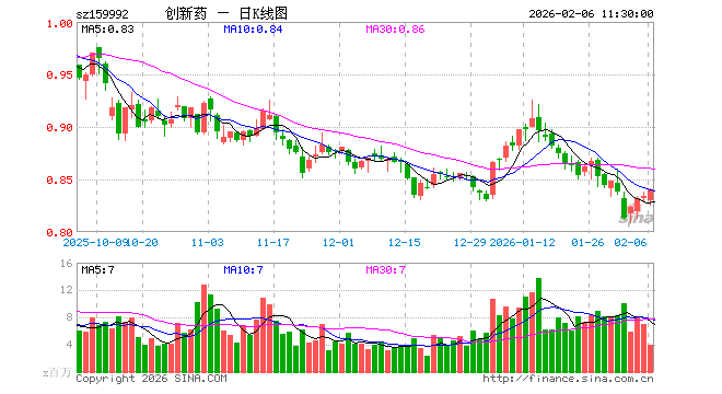 2月6日,截止午间收盘,创新药ETF(159992)涨0.72%,报0.840元,成交额3.37亿元。创新药ETF(159992)重仓股方面,药明康德截止午盘涨1.36%,恒瑞医药跌0.77%,华东医药跌0.70%,复星医药涨0.23%,科伦药业涨3.05%,百济神州跌0.32%,长春高新跌0.70%,康龙化成涨0.66%,泰格医药涨3.33%,艾力斯涨0.28%。