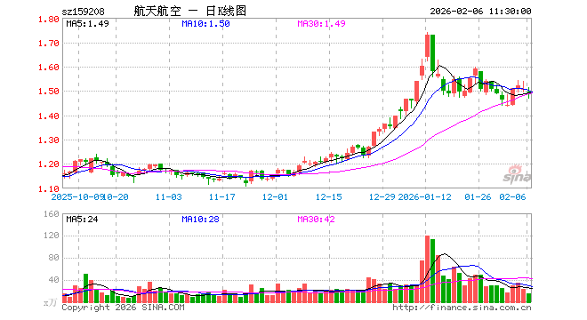 航空航天ETF万家(159208)跌1.13%,半日成交额2353.56万元