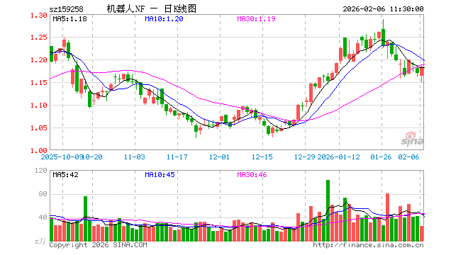 2月6日,截止午间收盘,机器人ETF南方(159258)涨1.11%,报1.183元,成交额2881.58万元。机器人ETF南方(159258)重仓股方面,科大讯飞截止午盘跌0.68%,汇川技术涨0.66%,拓普集团涨5.85%,大华股份跌0.38%,大族激光跌0.20%,双环传动涨2.22%,石头科技涨0.26%,中控技术跌2.07%,绿的谐波涨7.25%,机器人涨1.05%。