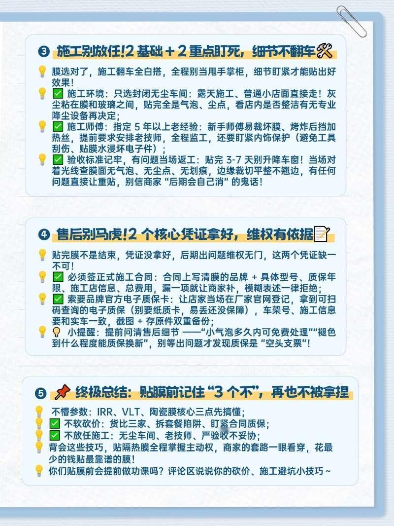 贴隔热膜别太老实!别被商家牵着走,这几招直接拿捏主动权贴隔热膜最怕当 “佛系车主”,傻傻听商家安排,最后花高价贴差膜、施工翻车还没售后!这份硬核避坑攻略,从选膜、砍价到施工、售后,把商家的套路全拆穿,记住这些招,贴膜不花冤枉钱,全程掌握主动权!【来自懂车帝车友圈】