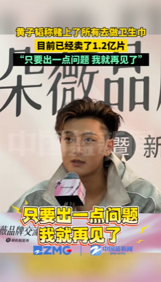 黄子韬说:“一共卖了1.2亿片卫生巾,做这个品牌是赌上了我的所有,如果卫生巾再出问题,我就要和大家说再见了。”