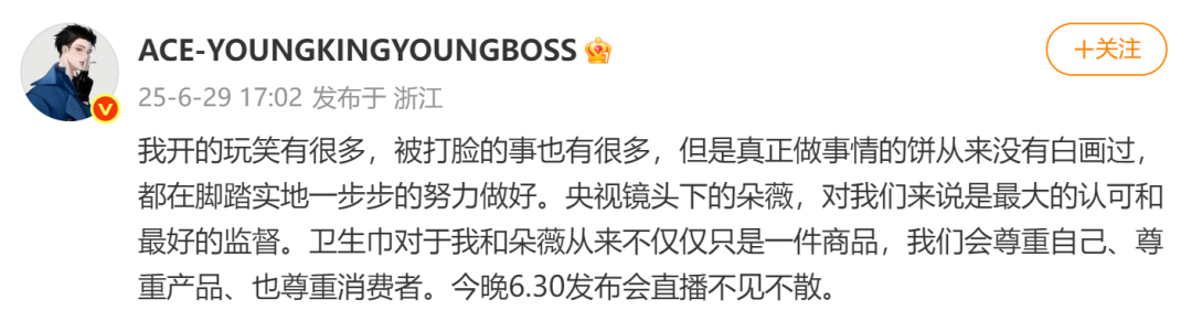 2025年5月18日晚7点,由黄子韬主理的卫生巾品牌上线发售。