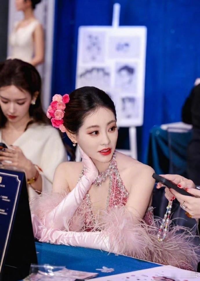 祝绪丹头上插了13朵鲜花祝绪丹这是把春天戴头上了吧13朵粉花错落簪在低盘发上,和粉色抹胸礼裙绝配,冷白皮衬得花更娇,中式簪花美学撞西式油画感,转身花瓣轻扬也太灵动了