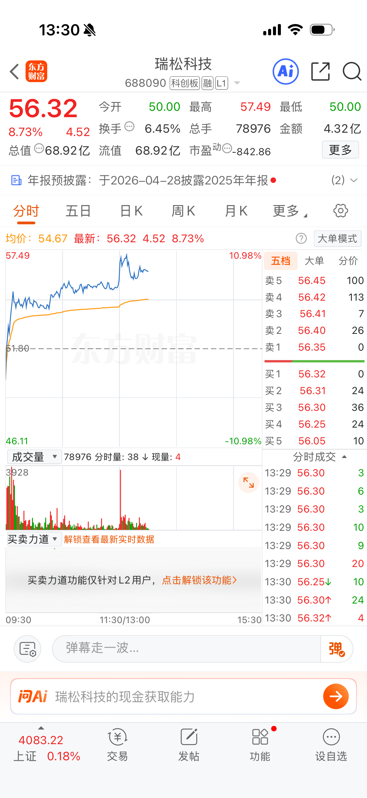 上证报中国证券网讯(记者何治民)2月6日,瑞松科技震荡走强,一度涨超10%,截至13时30分,该股涨8.73%,报56.32元/股。