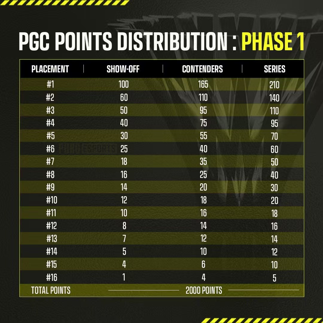泰国全年PGC积分分布公布:六项赛事共计5000PGC积分