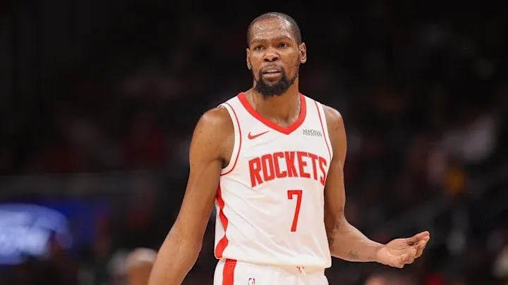 本场比赛,火箭球员凯文-杜兰特出战31分钟,21投11中,其中三分球4投3中,罚球8投6中,空砍31分3篮板1助攻5抢断。