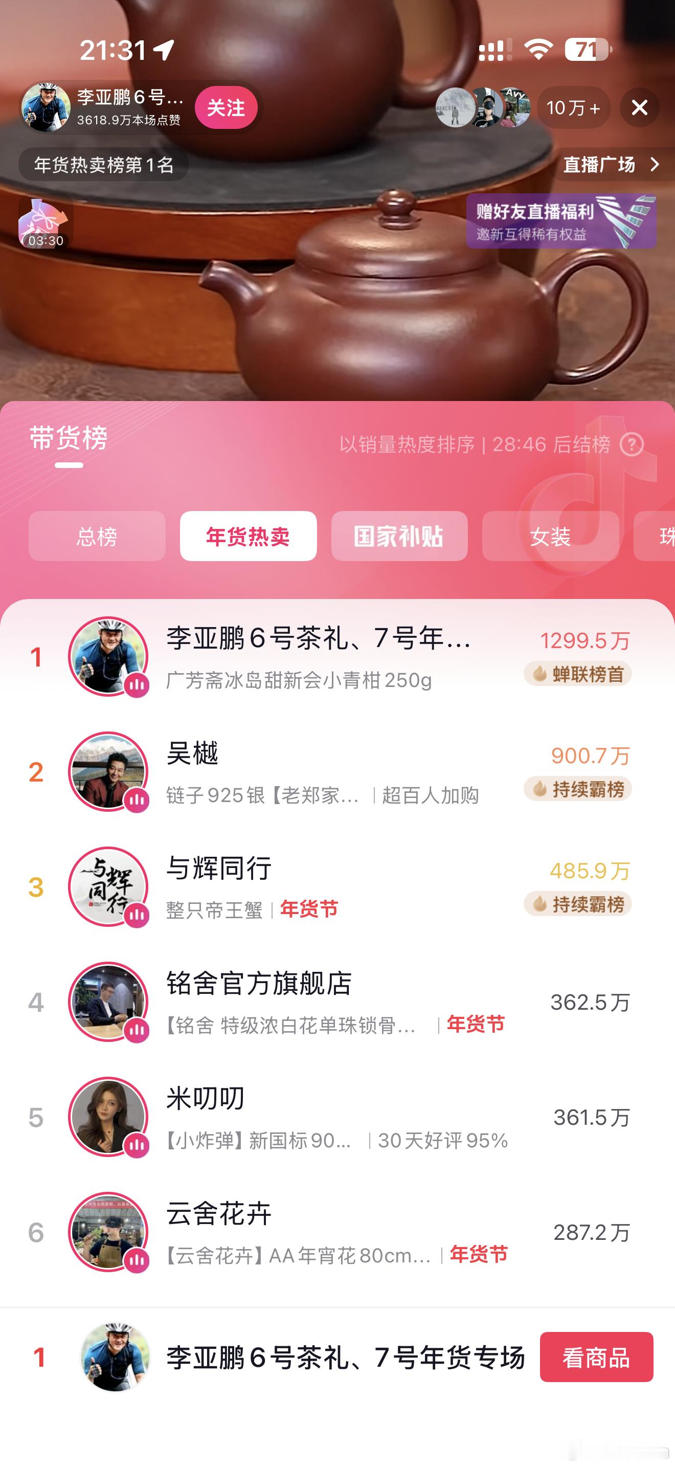 李亚鹏这样的好人值得抖音带货榜第一关键是评论区都说抢不到你说他要是多上一些生活必需品岂不是得卖爆😱