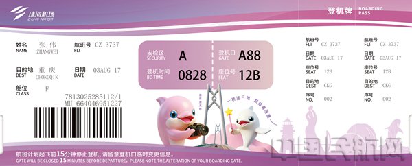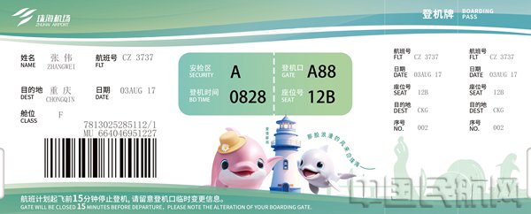 作为珠海机场深化“交通+文旅”融合发展的重要举措,此次登机牌焕新是对“珠海机场·快乐飞翔”品牌核心的生动诠释。此次主题登机牌的推出,进一步构建了“登机即打卡”的全链路IP体验,旅客可手持特色登机牌,与机场内白海豚雕塑、主题灯箱等场景联动拍照,让出行记忆更具仪式感。