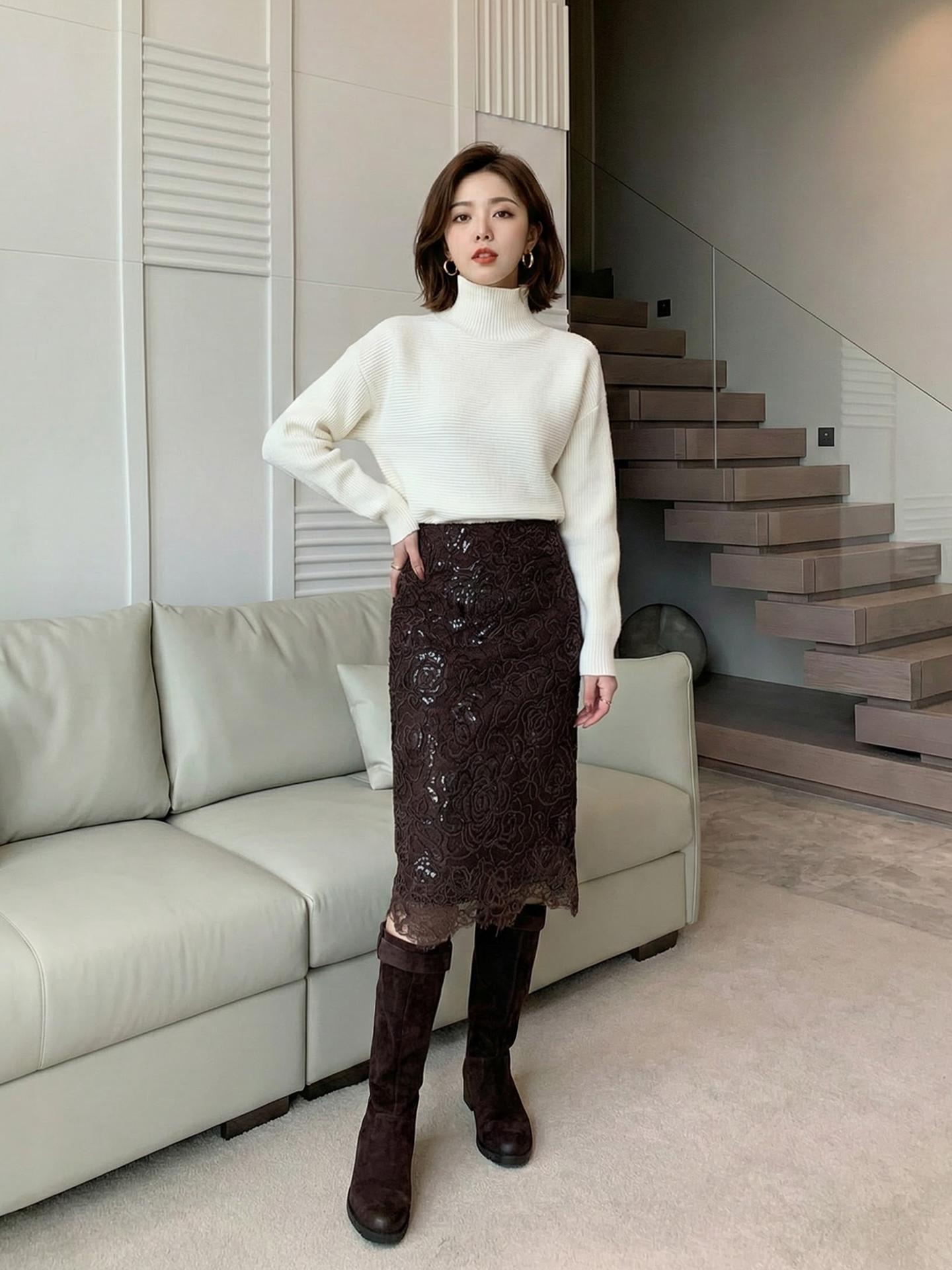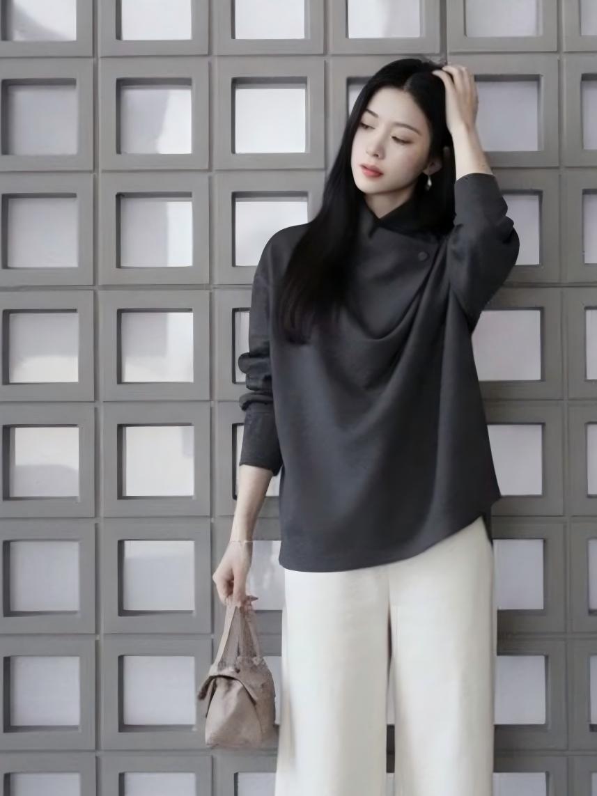 这套咖色系穿搭高级感拉满!双面呢大衣的深浅棕拼接自带质感,内搭全黑组合利落又显瘦